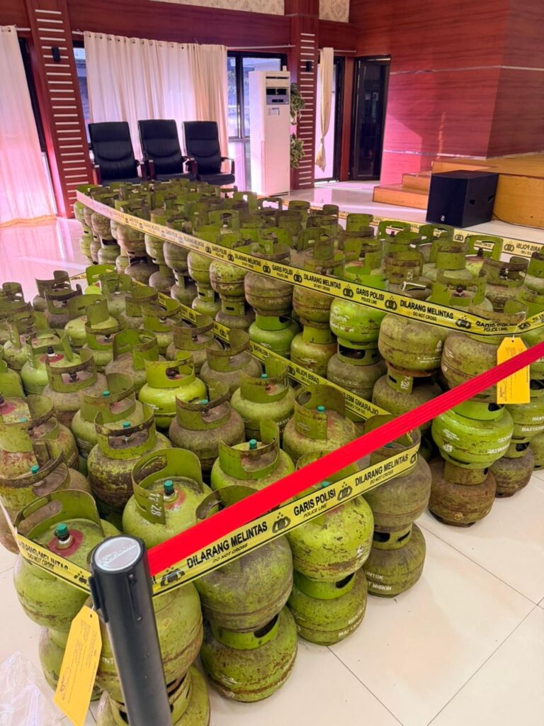 “Dari lokasi kejadian, kita menyita sejumlah barang bukti berupa ratusan tabung gas berbagai ukuran, alat suntik khusus pemindahan gas, timbangan, segel tabung, satu unit mobil pikap, serta dua unit telepon genggam yang digunakan dalam aktivitas ilegal tersebut,” ucap Sumarni.